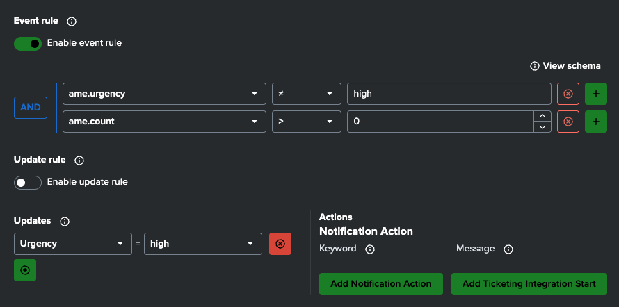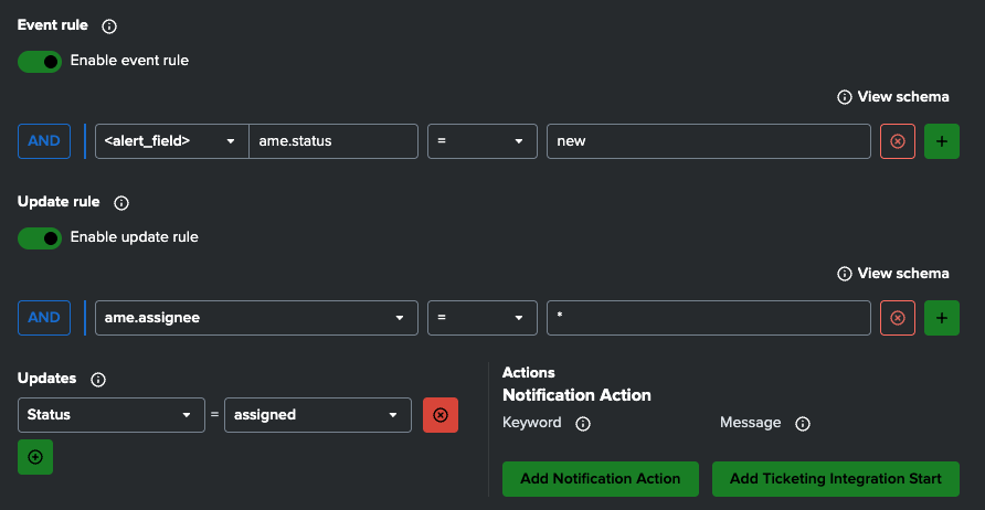 AME Rules allow you to update event attributes automatically during event creation or when appending new alerts to existing events.