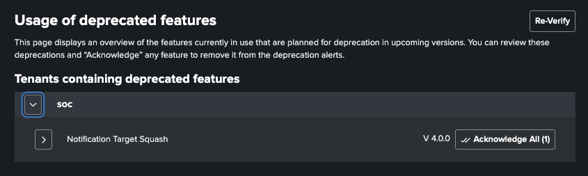 To check if deprecated features are used open the Usage of deprecated features dashboard under the Administration -> Deprecations Menu.